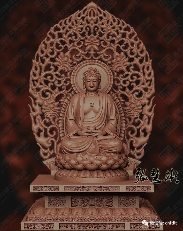 OK,我们的娑婆三圣作品由北斗星圆雕高级班三位学生齐力合作完成。因为效果图较多,咱们二话不说,直接上图。